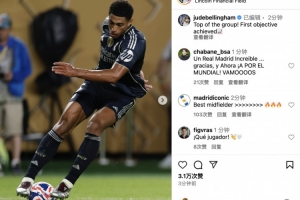 体育资讯6月27日讯 世俱杯小组赛,H组第3轮,皇马3比0击败萨尔茨堡红牛。贝林厄姆更新社媒庆祝晋级下一轮。