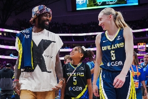 值得一提的是,佩奇曾多次提及自己最爱的球员是同城球队独行侠的球星欧文,而今天欧文就带着女儿来到现场为佩奇助威。二人赛后还一起合影、拥抱致意。