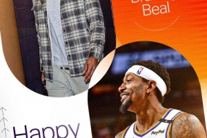 体育资讯6月29日讯 今天,太阳官方晒照,祝队内球员布拉德利-比尔32岁生日快乐。