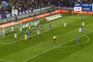 体育资讯04月02日讯 中超第4轮,津门虎vs国安。比赛第77分钟,津门虎角球机会,基莱斯门前乱战梅开二度,津门虎2-1反超国安。