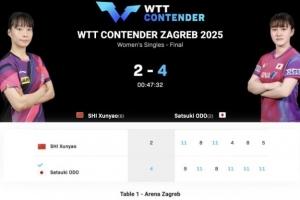 体育资讯6月29日讯 WTT常规挑战赛萨格勒布站女单决赛,大藤沙月4-2石洵瑶,大藤沙月夺得冠军,石洵瑶获得亚军。