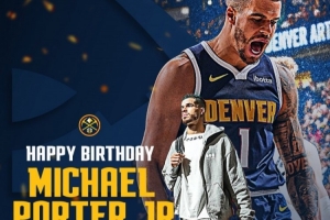 体育资讯6月30日讯 今天,掘金官方晒照,祝队内球员小迈克尔-波特27岁生日快乐。