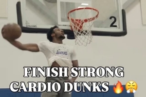 体育资讯6月30日讯 今日,湖人前锋詹姆斯更新Instagram Story,转发了一段其大儿子布朗尼连续完成扣篮的体能训练。