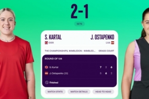 体育资讯6月30日讯 在刚刚结束的温网女单首轮中,20号种子奥斯塔彭科经过三盘争夺不敌本土球员卡塔尔,遭遇一轮游。