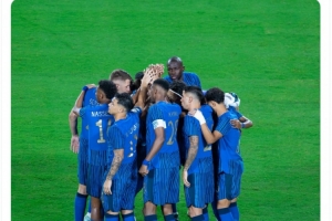 库利巴利社媒晒出球员们围在一起的照片,庆祝球队晋级,配文:“利雅得新月精神,新月4-3曼城。”