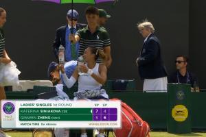 第二盘比赛,西尼亚科娃3-2领先时,西尼亚科娃申请医疗防护员,比赛暂停约5分钟后恢复进行!