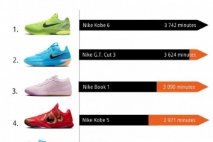 值得一提的是,在相关NBA的统计中,科比球鞋同样是占据前列。
