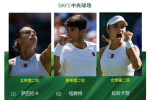 体育资讯7月2日讯 温网今天将进入到第三个比赛日的争夺,萨巴伦卡、阿尔卡拉斯将亮相中央球场出战第二轮的比赛。中国选手方面,布云朝克特将完成与中岛布兰登的补赛,多对中国组合亮相女双首轮。