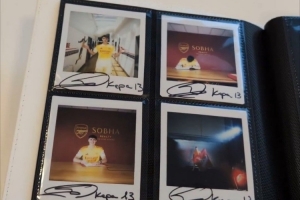 阿森纳官方社媒晒出视频,新援门将凯帕在签约照片上签名,这些照片被放入相册收藏。