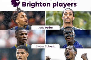 体育资讯7月2日讯 布莱顿前锋若昂-佩德罗加盟切尔西,英超官方列出了目前切尔西阵中的布莱顿旧将,库库雷利亚、凯塞多在列。