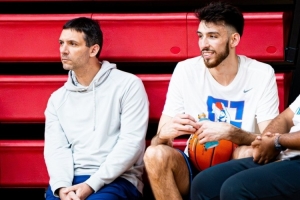 体育资讯7月3日讯 切特-霍姆格伦近日在高中母校、位于明尼阿波利斯的明尼哈哈学院举办青少年训练营。而他的主教练戴格诺特也来到现场支持弟子的训练营。