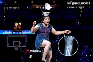 体育资讯07月03日讯 昨日WNBA总裁杯,狂热击败山猫夺冠,顶碗大妈Red Panda在中场表演进行不到一分钟便从独轮车上摔下来,最终坐上轮椅离开。
