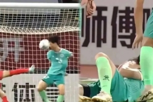 6月28日,镇江队与盐城队的比赛中,盐城队前锋在门前大力凌空抽射,足球呼啸飞向球门,千钧一发之际,镇江队47号球员黄玮鸿双手背在身后,迅速移动挡住球路。足球击中黄玮鸿正脸被弹开,黄玮鸿也仰面倒地,有网友表示“隔着屏幕我脸都疼了”。