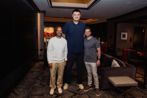 “和兄弟们在一起嗨。拉斐尔很开心和姚明见面。”费利西亚-斯通在图片旁边写道。