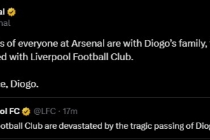 体育资讯7月3日讯 利物浦球员迪奥戈-若塔今天因车祸离世,阿森纳随后发文悼念。