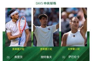 体育资讯7月4日讯 温网今天将进入到第5个比赛日的争夺,男、女单打将展开1/16决赛的争夺。