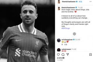 英超名宿迈克尔-欧文在社媒发文哀悼,他写道: