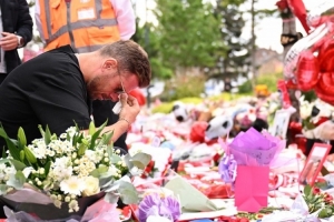 利物浦前锋若塔在车祸中离世,老队长亨德森回到安菲尔德球场悼念若塔,为他献花。