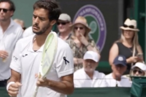 体育资讯7月4日讯 在今天进行的温网男双比赛中,葡萄牙球员卡拉布尔佩戴黑纱出战,以此悼念同胞若塔。
