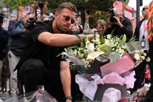 体育资讯7月4日讯 在若塔和他的兄弟安德烈-席尔瓦不幸去世后,球迷们在安菲尔德球场外献上了鲜花和悼念物品。