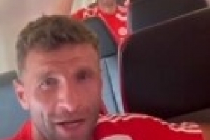 赛前穆勒秀出一段在飞机内拍摄的视频,他表示即将飞往比赛城市亚特兰大,大家是否准备就绪,凯恩回答准备好了,并喊了一声“siu”。