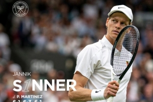 体育资讯7月5日讯 温网男单第三轮,头号种子辛纳3-0轻取对手晋级16强。