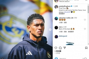贝林厄姆此役为皇马首发出战老东家,赛后他在社交媒体上写道:“四强,很高兴见到一些熟悉的面孔,永远爱多特。”