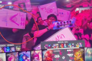 体育资讯7月6日讯 今日MSI淘汰赛上第三局比赛中,导播镜头给到观众席时有现场观众手举“科目四>LPL”的应援牌!