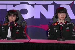 体育资讯7月6日讯 2025MSI,T1横扫BLG晋级胜决,赛后T1中辅两位选手参加媒体发布会。