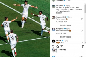 莫德里奇留言称赞:“助攻制造机。”