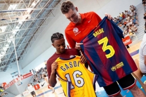 体育资讯7月6日讯 巴萨官推晒照,巴尔德与加索尔互换球衣。