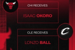 体育资讯7月7日讯 公牛官方宣布,球队和骑士的交易正式达成,这比交易中,公牛送出后卫朗佐-鲍尔,换回后卫/前锋艾萨克-奥科罗。
