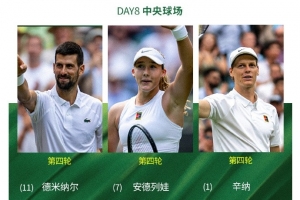 体育资讯7月7日讯 温网进入到第8个比赛日的争夺,男、女单打下半区将决出8强名额。