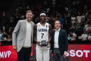 2026年状元大热门、美国队前锋AJ-迪班萨斩获赛会MVP,他本届比赛场均拿到14.3分4.1篮板2.3助攻1.1抢断,其中决赛得到11分6篮板2助攻1抢断(11中4,三分3中0,罚球4中3)。