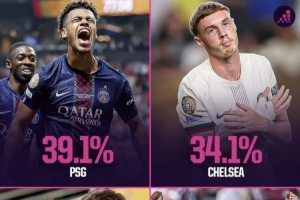 体育资讯7月7日讯 世俱杯四强已全部出炉。OPTA超级计算机预测了四强赢得世俱杯的概率,其中巴黎以39.1%居首,切尔西34.1%紧随其后,皇马24.2%排名第三。