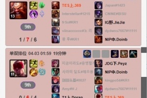 体育资讯4月3日讯 根据韩服排位统计小程序显示,TES上单369近期韩服排位状态欠佳,遭遇了一波七连败,酒桶更是打出1-7-6的糟糕战绩。