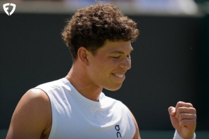 男单第四轮,10号种子谢尔顿鏖战四盘逆转晋级,以3-6 6-1 7-6(1) 7-5击败意大利球员索内戈,生涯首次闯入温网八强。