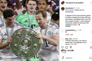 体育资讯7月9日讯 穆勒今夏将正式告别拜仁,凯恩更新社媒向穆勒表达了祝福。