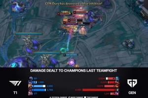 体育资讯7月10日讯 2025MSI胜决GEN首局击败T1,决胜团Ruler烬打出了8985的伤害砍下四杀击溃T1。
