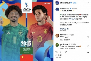 体育资讯4月3日讯 中国男足U17将在亚洲杯首战交手沙特U17国家队,亚足联官方晒出海报预热本场比赛。