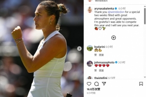赛后,萨巴伦卡更新了社媒告别温网,她向组委会表示了感谢并期待明年再次参赛。