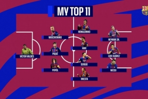 体育资讯7月12日讯 亚马尔接受巴萨官方的采访,列出了自己心中的巴萨队史最佳11人阵容,梅西、小罗、内马尔、苏亚雷斯、哈维、伊涅斯塔在列。