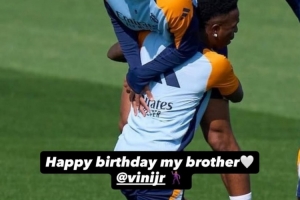 体育资讯7月12日讯 今日是维尼修斯25岁生日,队友贝林厄姆也在个人社媒晒出两人训练场上的合照,配文为其送上生日祝贺。