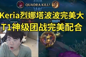姿态看Keria烈娜塔波波完美大,T1团战完美配合爆杀GEN拿下赛点:T1这团战Combo,羊+烈娜塔大+漫天飞羽倒钩!