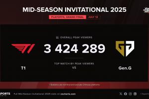 赛后LOL官方统计总决赛峰值观众人数超过 340 万,打破 MSI 收视率纪录!