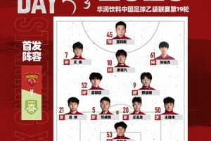25华润饮料中乙联赛第19轮,长春喜都vs上海海港富盛经开,今日首发名单。