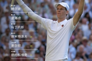 辛纳将冲击个人温网首冠,本届温网辛纳总比赛耗时11小时45分钟,轰出了54记ACE,200个制胜分,总得分为547。