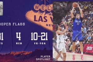 体育资讯7月14日讯 夏季联赛独行侠69-76不敌马刺,弗拉格21中10,三分9中3,罚球13中8砍下31分4篮板。