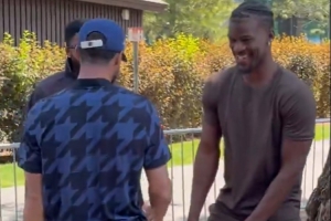 体育资讯7月14日讯 美媒Warriors on NBCS晒出视频,勇士球员吉米-巴特勒今天来到塔霍湖高尔夫名人赛比赛现场替库里加油助威。