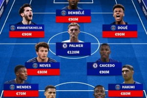 努诺-门德斯(巴黎,7000万欧)、科尔维尔(切尔西,5500万欧)、帕乔(巴黎,6500万欧)、阿什拉夫(巴黎,8000万欧)